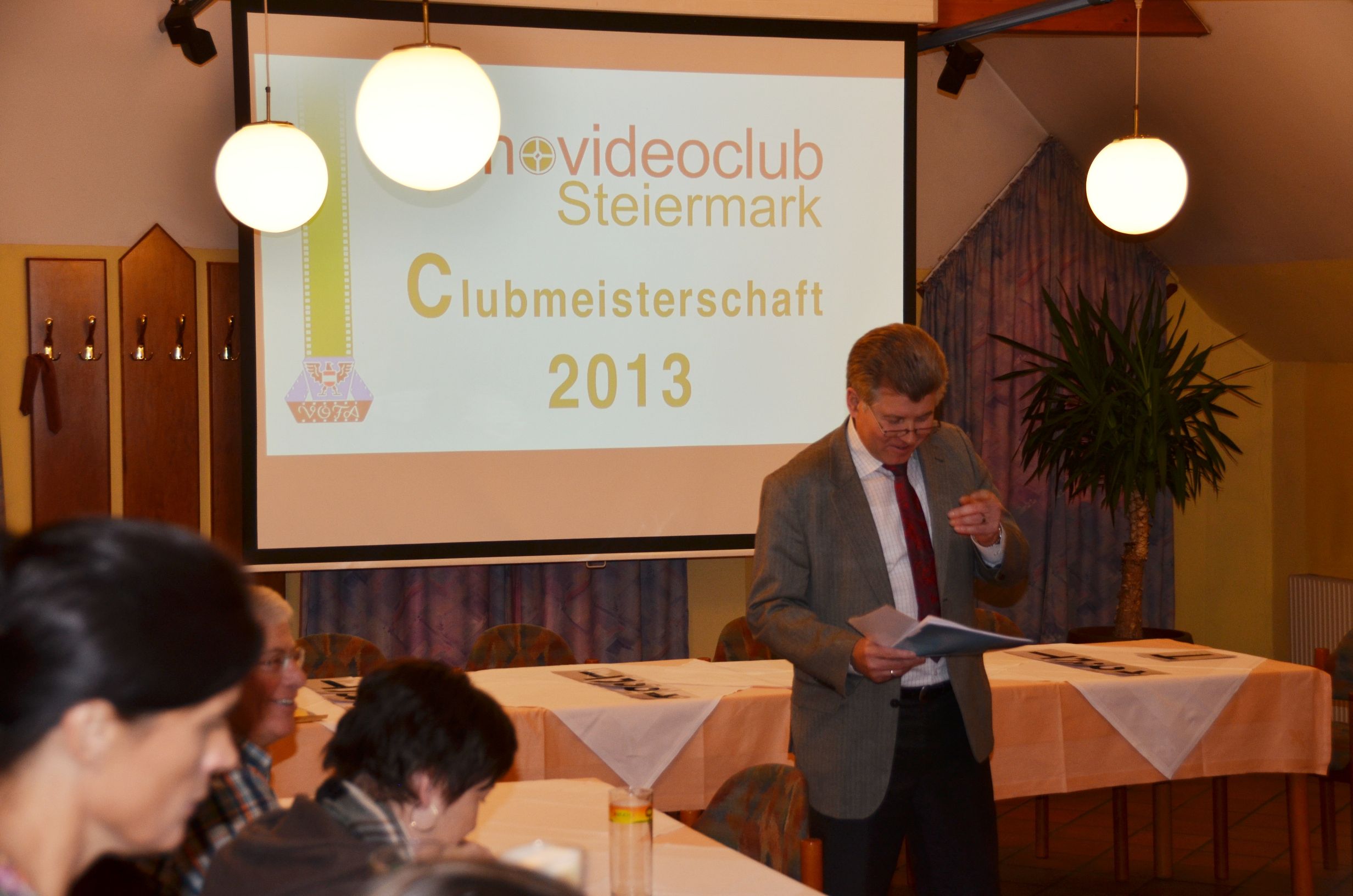 Am Samstag, dem 9.2., war es wieder soweit. Der jährliche Höhepunkt des filmischen Kräftemessens, der Clubmeisterschaft 2013 wurde mit dem Start um 14.00 Uhr im Vereinslokal eingeläutet. Helmut Spreitzhofer konnte diesmal 34 Besucher (19 Clubmitglieder und 15 Gäste) begrüßen. Der Wirt des „Goldenen Hirschen“ hatte extra für uns das Lokal geöffnet, es wurde auch eine kleine Speisekarte angeboten, die Speisen konnten vor dem ersten Filmblock bestellt werden.