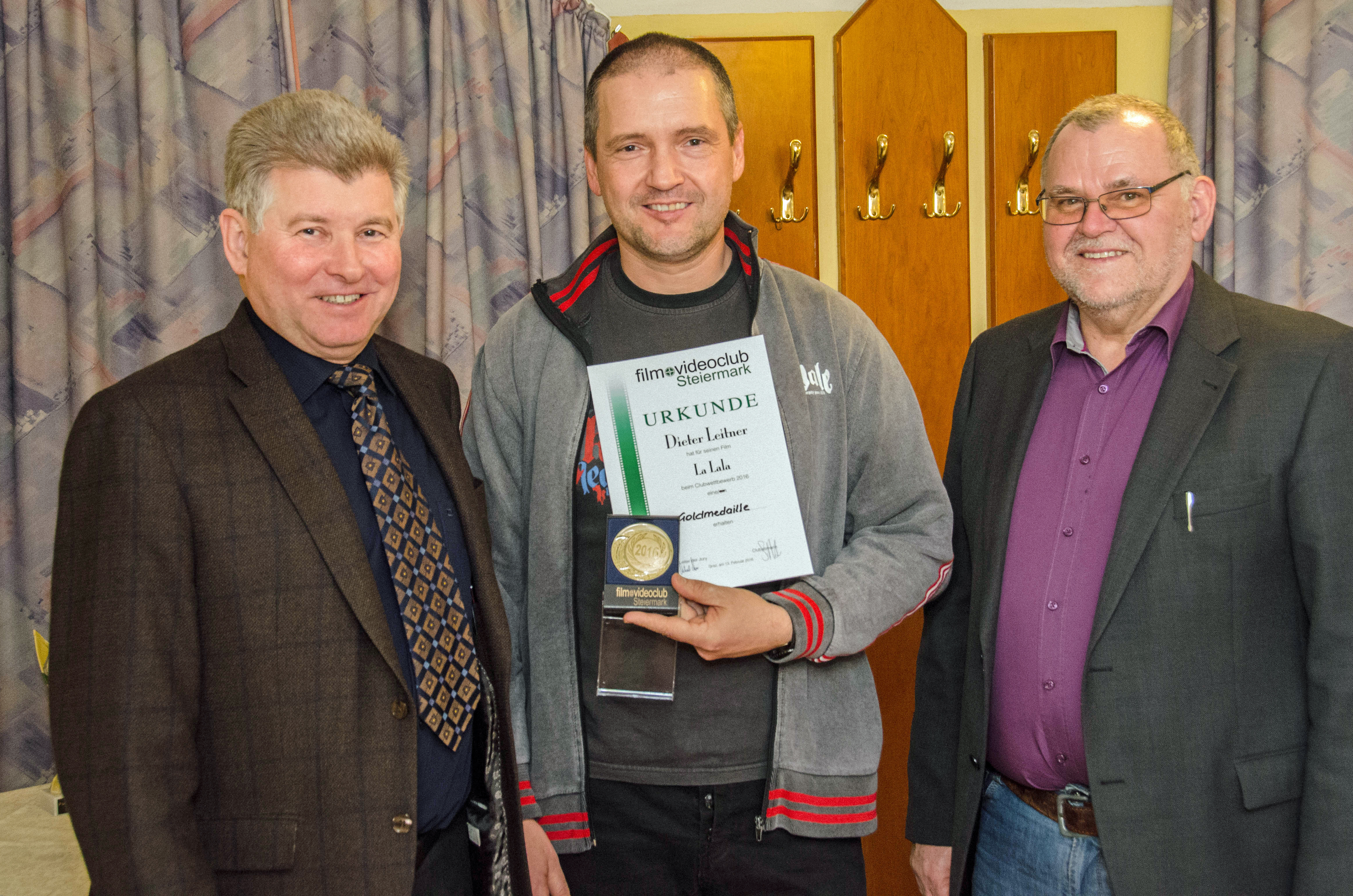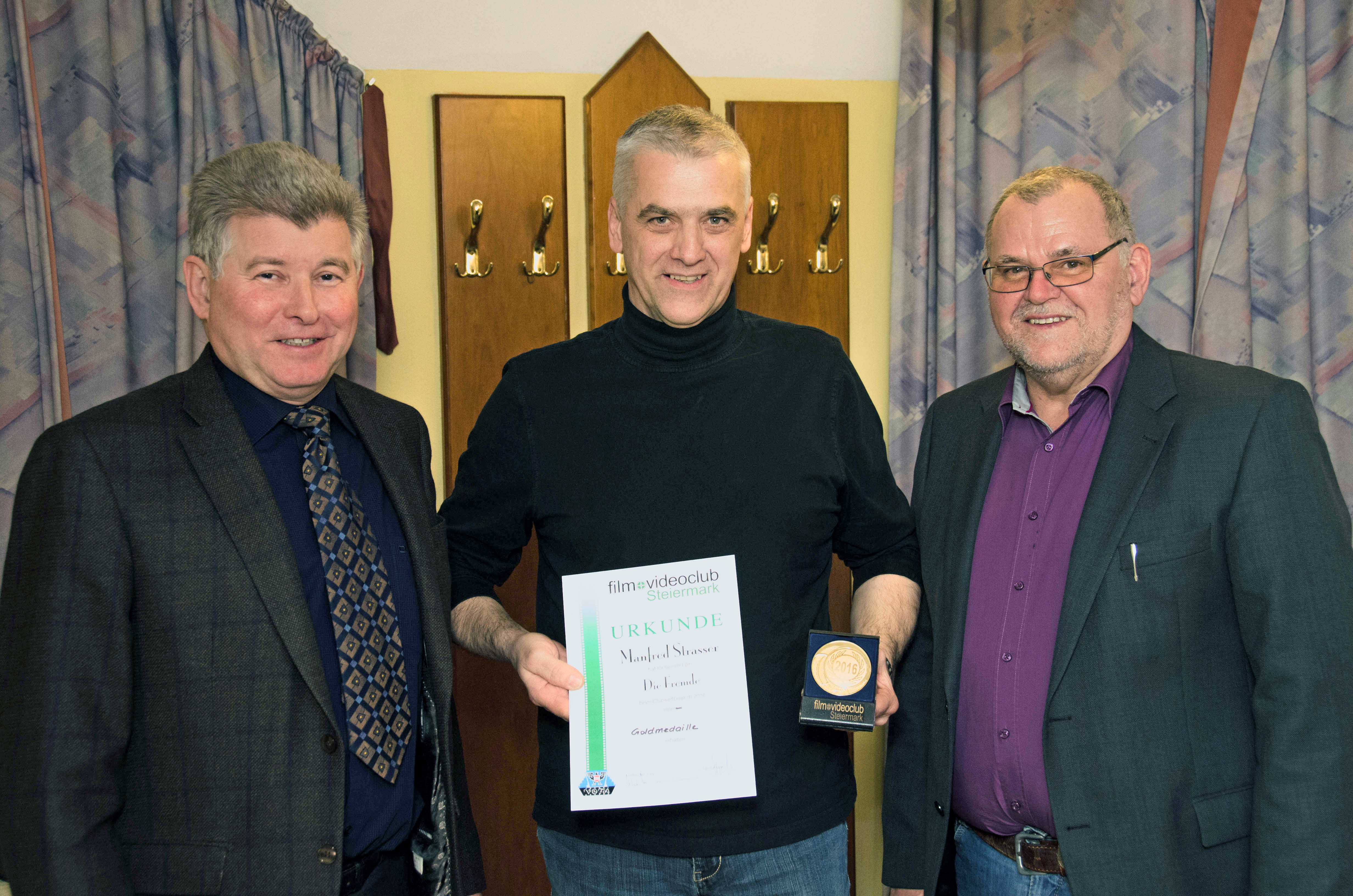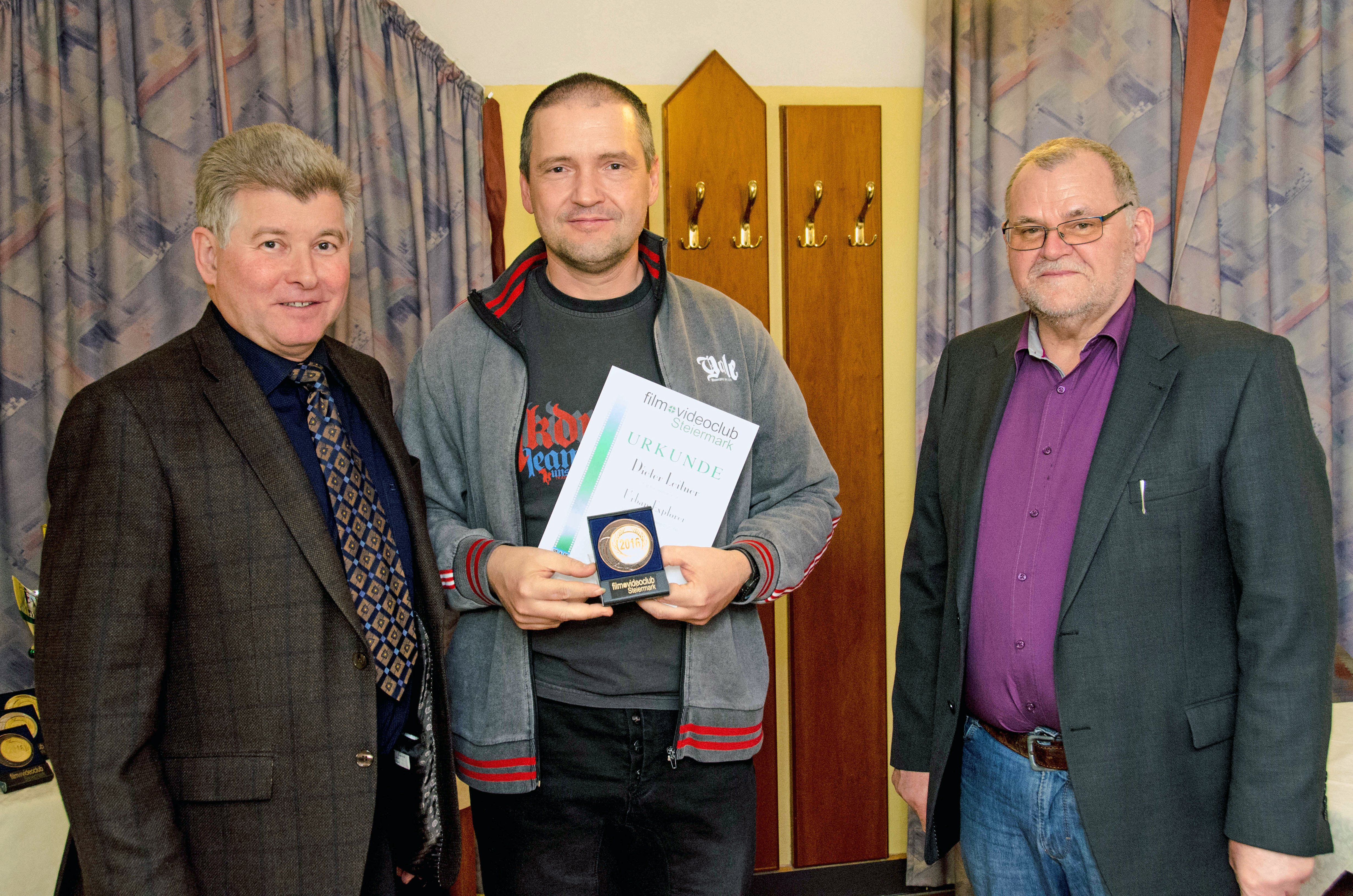 Nun folgte ein weiterer Höhepunkt des Abends: Die Auswertung der Stimmzettel des Publikumspreises. Nach Verlesung sind die Noten gleich in einen Laptop eingegeben worden. Alle konnten, wie immer über den Beamer auf die Leinwand projiziert, alles mit verfolgen. Nach spannendem Kopf- an Kopf Rennen zwischen den Goldmedaillen Gewinnern der Nr. 1 (Die Fremde) und der Nr. 3 (Aus dem Leben eines Riffs) konnte schließlich Helmut Schubert bei der abschließenden Preisverleihung den Siegerpokal des Publikumspreises unter großem Beifall entgegen nehmen.