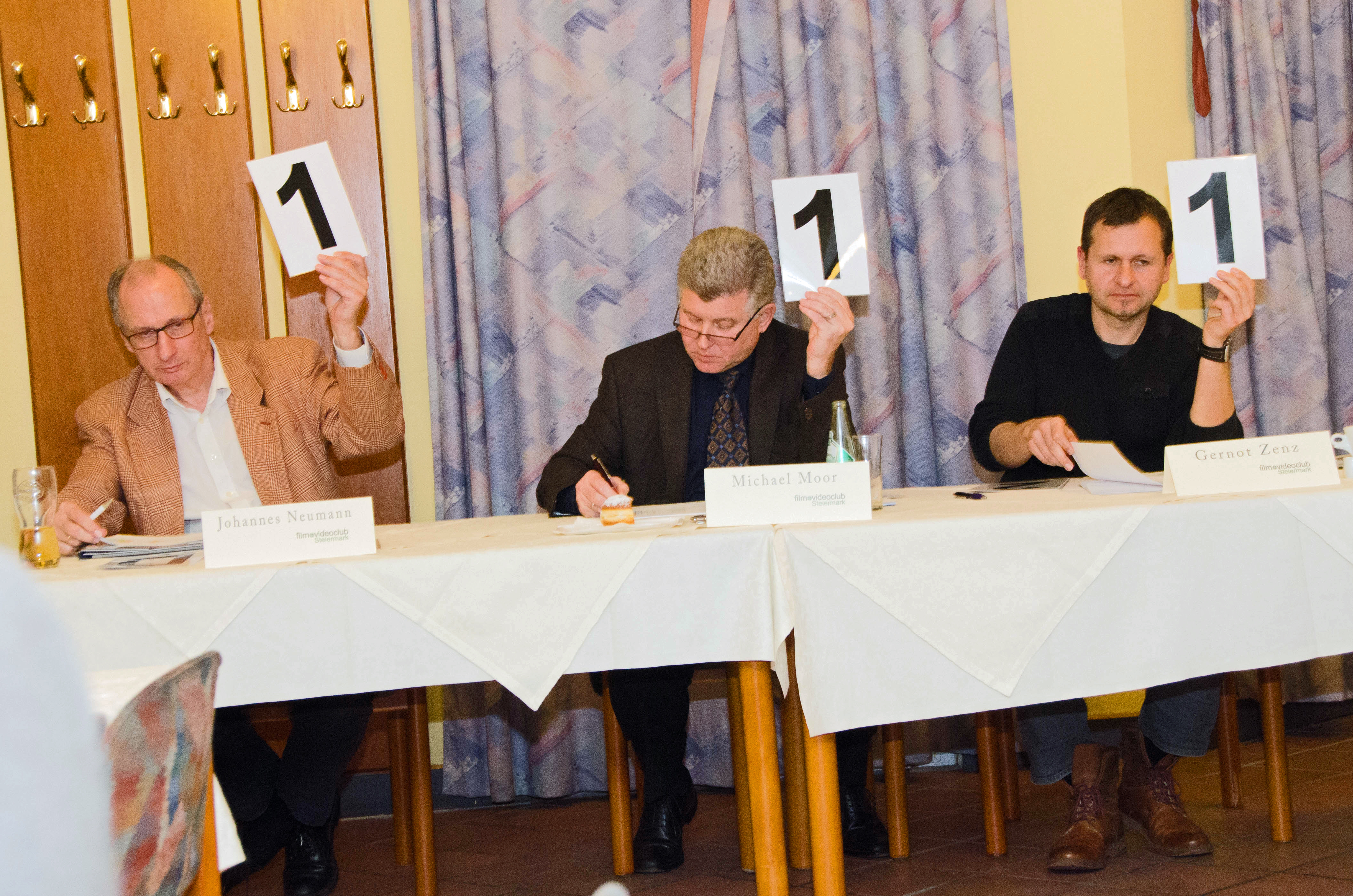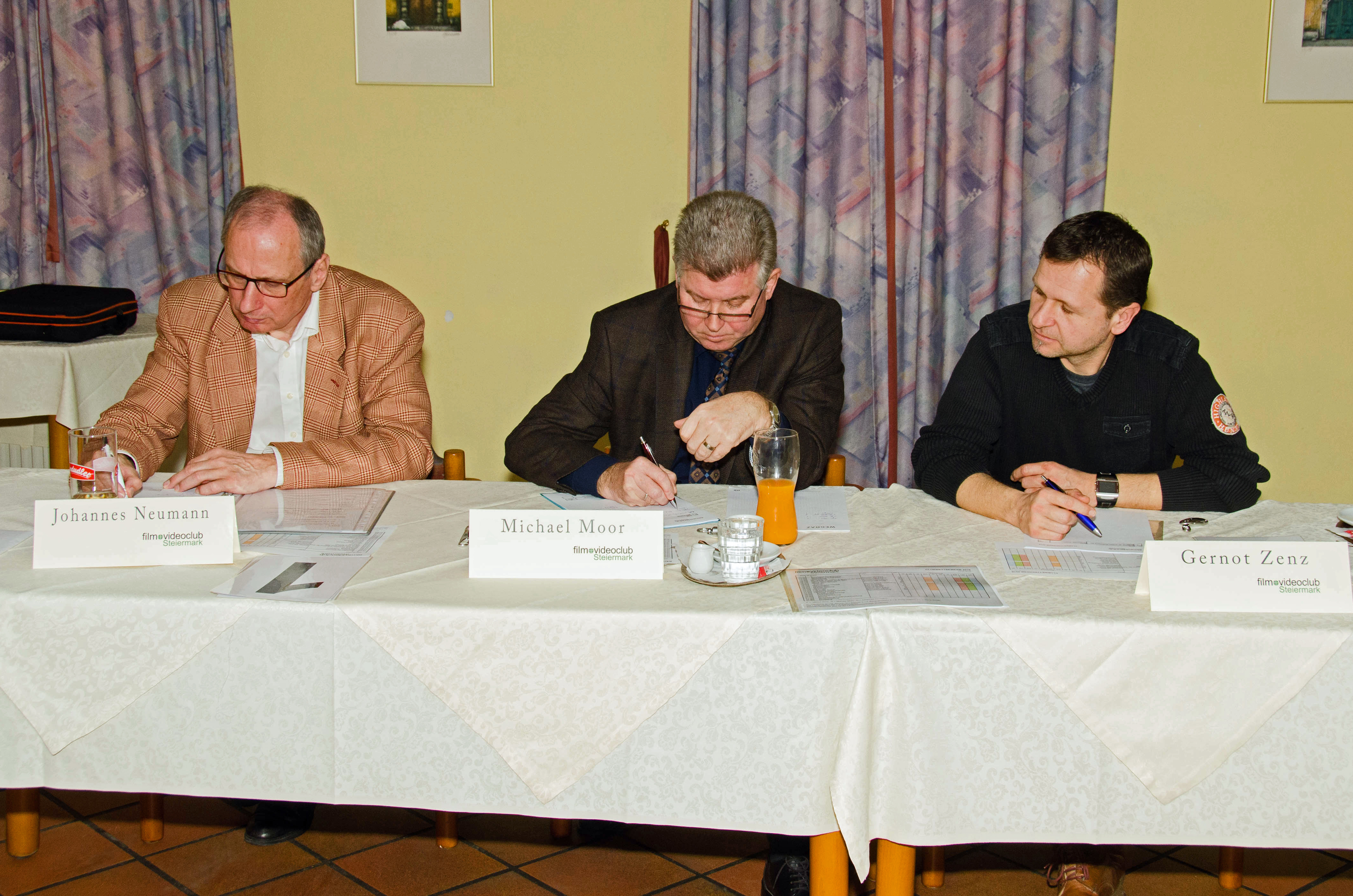 Frisch gestärkt, schritt dann die Jury zur Diskussion der eingereichten Filme. Die Aussagen der Juroren habe ich zwar stichwortweise mitgeschrieben, aber sie in diesem Bericht zu veröffentlichen, würde zu weit gehen und den Rahmen sprengen. Bei der Abstimmung der Filme im Medaillenrang war schon ein erfreulicher Trend erkennbar: 10 der eingereichten 13 Filme hatten sich für die Landesmeisterschaft qualifiziert, ein sensationelles Ergebnis, drei Autoren erreichten ein Diplom. Vielleicht liegt der Grund für die vielen qualitätsvollen Filme auch darin, dass sich in den Diskussionen der Filme des Verbands-Umlaufprogramms immer wieder Positives für die Anwendung bei den eigenen Filmen heraus kristallisiert. Anschließend sind von der Jury die Medaillenränge vergeben worden: