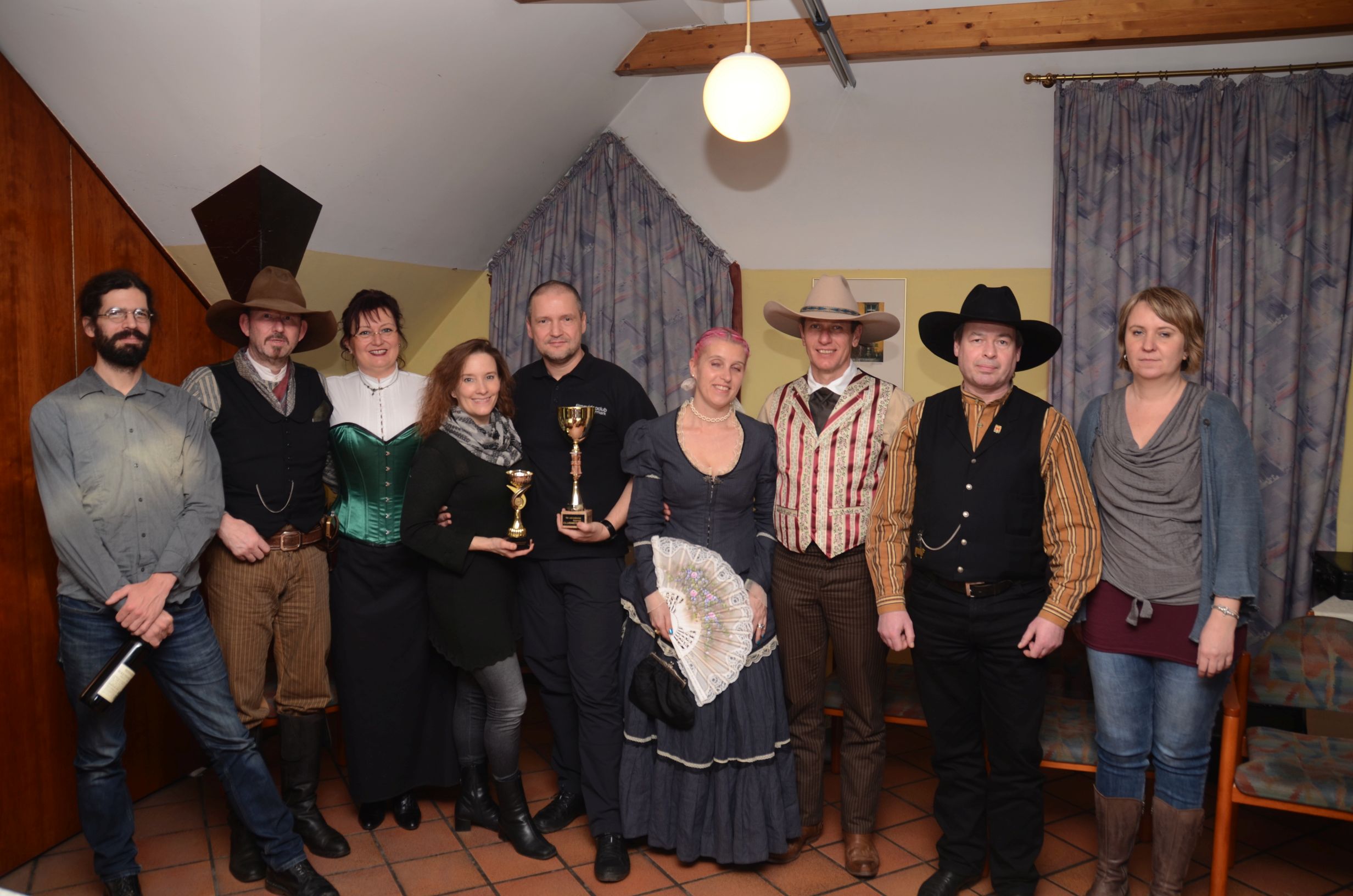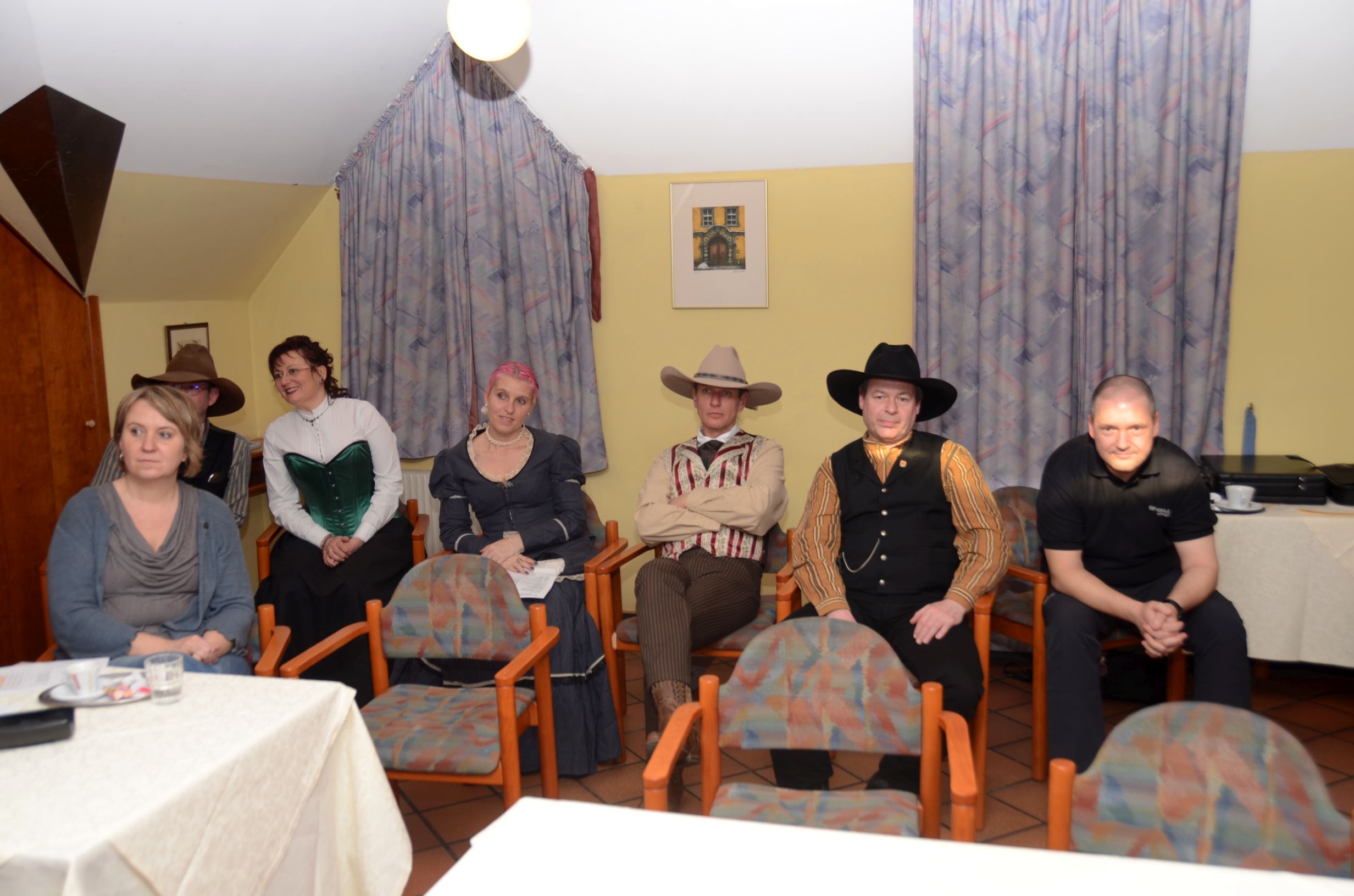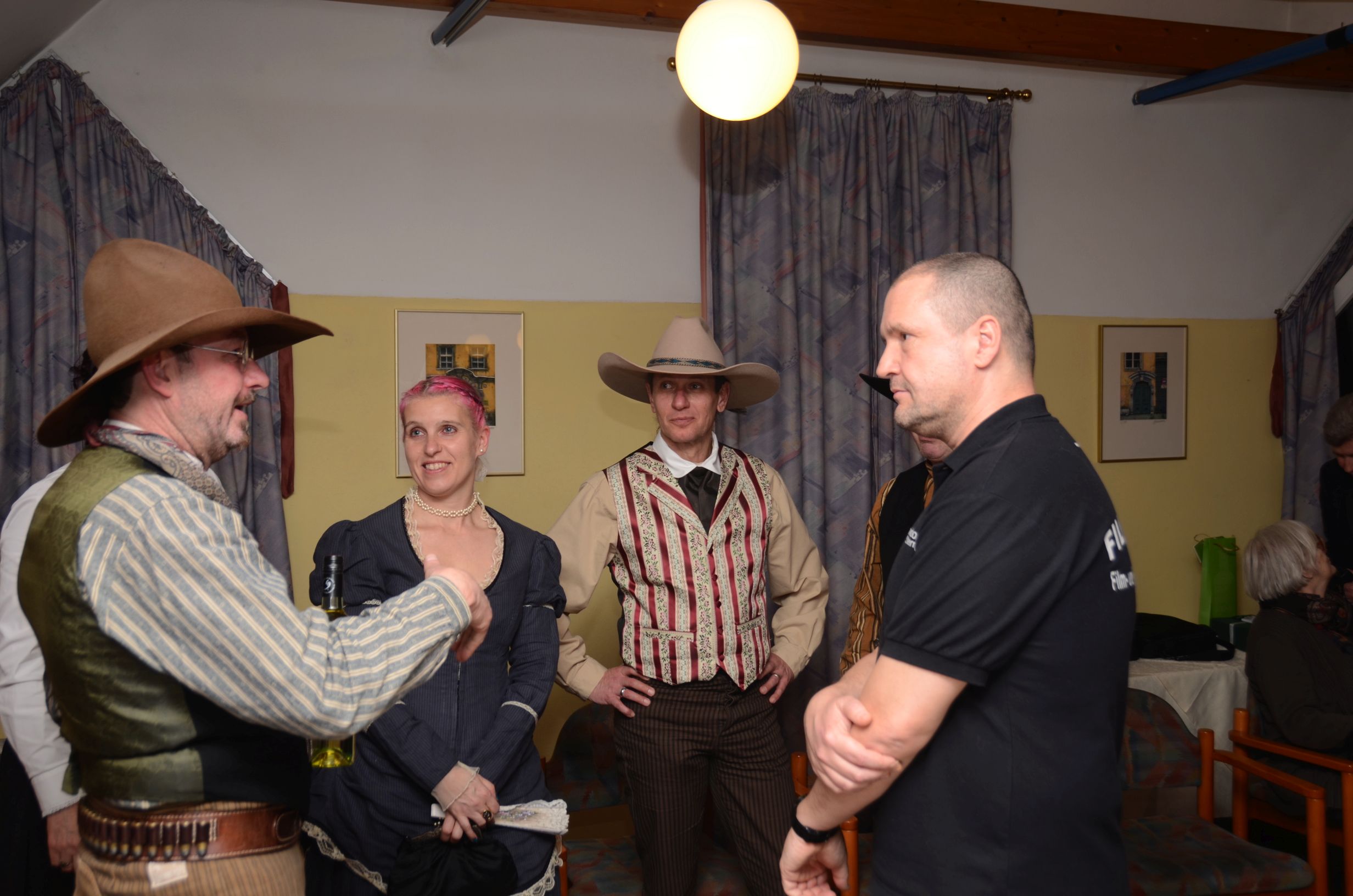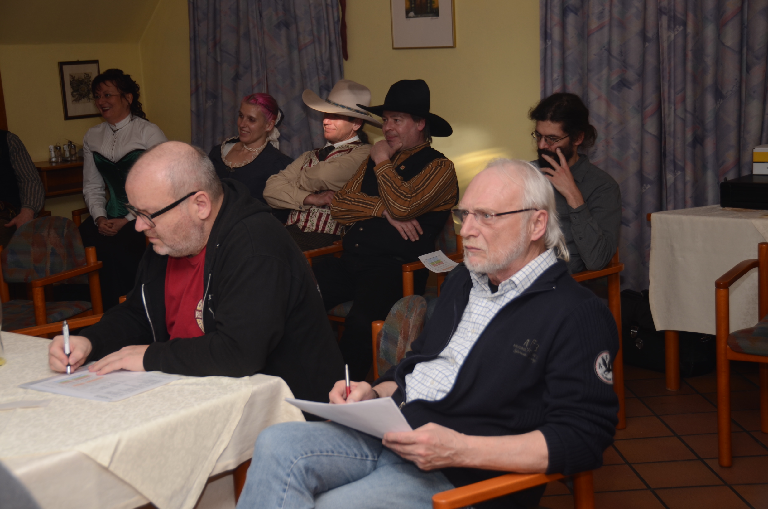 Michael Moor erklärte zu Beginn, dass er sich die Teilnahme an der Veranstaltung und den Juryvorsitz wegen des Ablebens seines Vaters wohl überlegt hätte, betonte aber, dass es ganz sicher in seinem Sinne gewesen wäre, alles wie vorgesehen, abzuwickeln. Dann erklärte er den Ablauf der Veranstaltung. Zur Clubmeisterschaft 2017 sind 12 Nennungen eingegangen, die Vorführreihenfolge wurde bereits beim Clubabend am 2. Februar ausgelost. Es folgte das Austeilen der Bewertungsblätter für den Publikumspreis an die 19 anwesenden Clubmitglieder, auch 23 Gäste waren gekommen (Gesamtbesucherzahl 42!). Den Hauptanteil stellte die im Western-Look erschienene Gruppe, die das Team Leitner/Bochmetz/Geier/Dušek bei ihrem Film „Dry West“ unterstützt hatte.