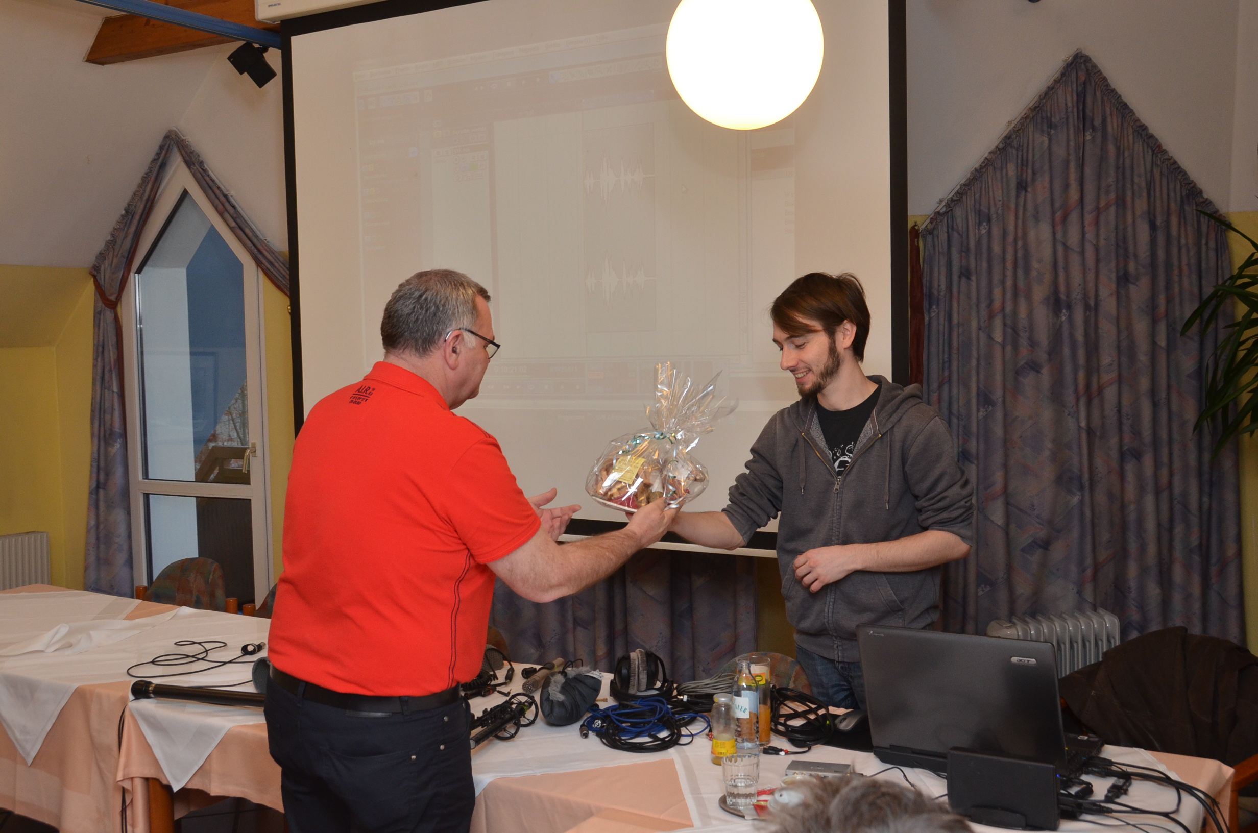 Nach einer allgemeinen, verständlich moderierten, theoretischen Einleitung ging es nach dem Mittagessen ins Eingemachte. Anhand von Anwendungsbeispielen mit verschiedenen Mikrofonen, wurde vom Vortragenden Unterschiede in der Aufnahmetechnik aufgezeigt. Besonders interessant gestaltete sich jener Teil des Seminars, bei dem Möglichkeiten von Tonverbesserungen am Computer erklärt wurden. Egal welcher Art, ob Apple oder PC, der prinzipielle Einsatz von Tonkorrekturen in Frequenz, Lautstärke, Kompressor oder Tonmodulation wurde den Seminarteilnehmern anschaulich und leicht verständlich von Herwig Rogler nahe gebracht. Eines stellte sich auf jeden Fall heraus: Aus einem „verhauten“, übersteuerten, mit Nebengeräuschen behaftetem Ton lässt sich kein optimaler mehr herstellen. Es war ein gelungenes Seminar, von dem die Teilnehmer sicher vieles, je nach dem, welches Audio-Programm sie verwenden, in ihren Filmen anwenden können. Eines müssen wir künftig berücksichtigen: Dem Ton in unseren Filmen müssen und werden wir in Zukunft wesentlich mehr Beachtung schenken.