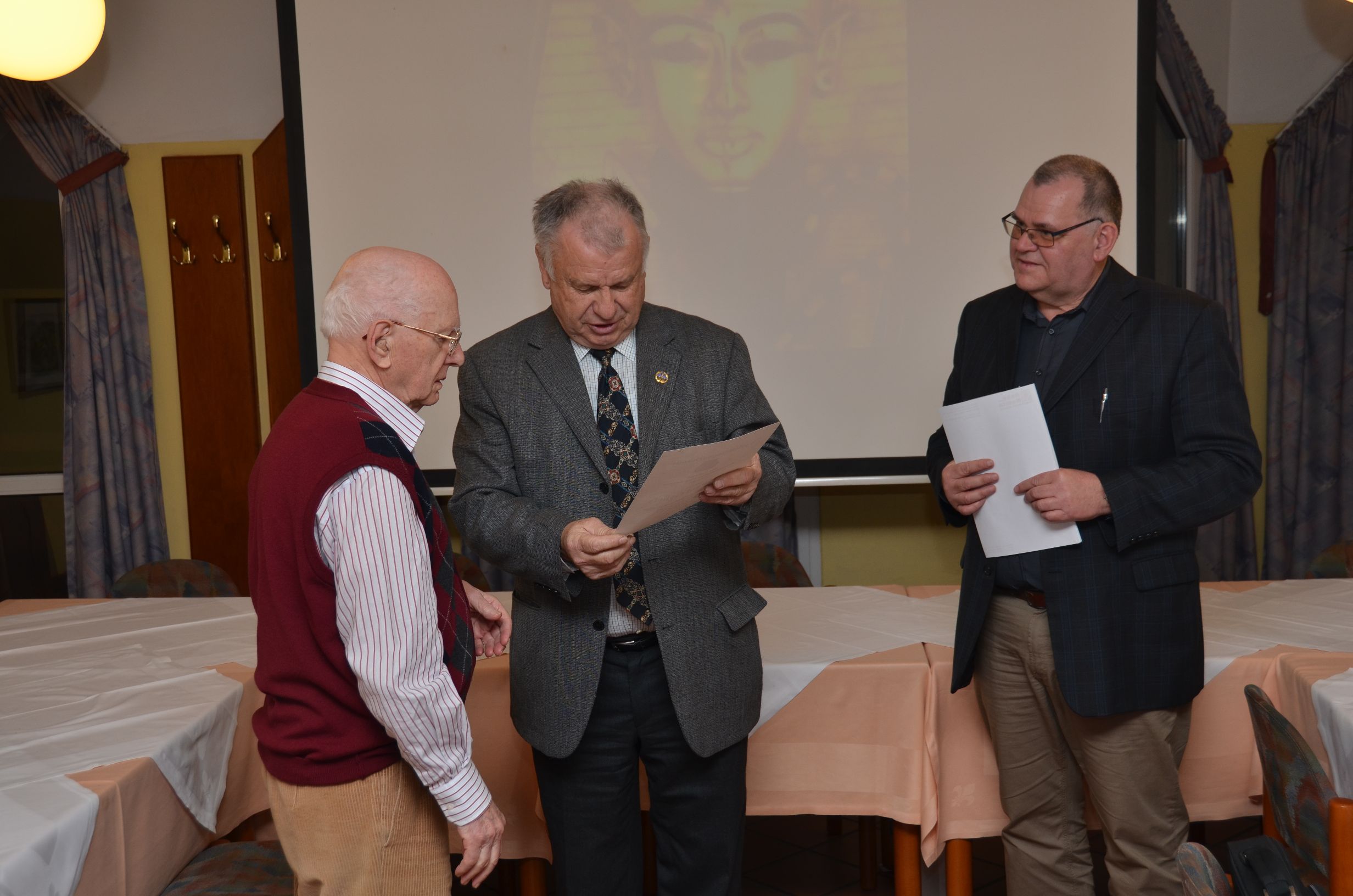 Beim Clubabend am 4. April konnten wir einen seltenen Gast begrüßen: Regionalleiter Erich Cipoth. Vor dem Start des Abendprogramms, gestaltet von Peter Leskoschek und Dieter Leitner, begrüßte Clubleiter Helmut Spreitzhofer den Gast und machte dabei ein geheimnisvolles Gesicht. Erich Cipoth sagte dann, er sei in besonderer Mission in unseren Club gekommen: Er bat den total überraschten Dr. Paul Györfy vor das Publikum und überreichte unserem 90-jährigen „Schoko-Pauli“ das ihm vom VÖFA verliehene