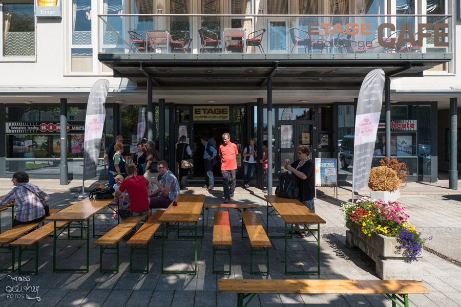 Berufliche Verpflichtungen haben es dieses Jahr nicht zugelassen, die ganze Woche beim Festival der Nationen zu verbringen, aber Susanne und ich waren zumindest am Pfingstwochenende für 3 Tage dabei. Das Festival fand zum zweiten Mal unter der Leitung von Christian Gaigg im Kino in Lenzing statt. Der schöne Kinosaal ist riesig und mit bequemer Bestuhlung ausgestattet. Die Qualität von Bild und Ton war hervorragend. Stehtische im Vorraum, Biertische in der Sonne vor dem Eingang und ein gemütliches Café im Obergeschoss luden in den Pausen zum Plaudern ein. Als Rahmenprogramm wurden ein Kulturabend, Grillnachmittag am See und eine Attersee-Schifffahrt angeboten. Ein gratis Shuttleservice transportierte Gäste mit Unterkunft am See von und zum Veranstaltungsort.