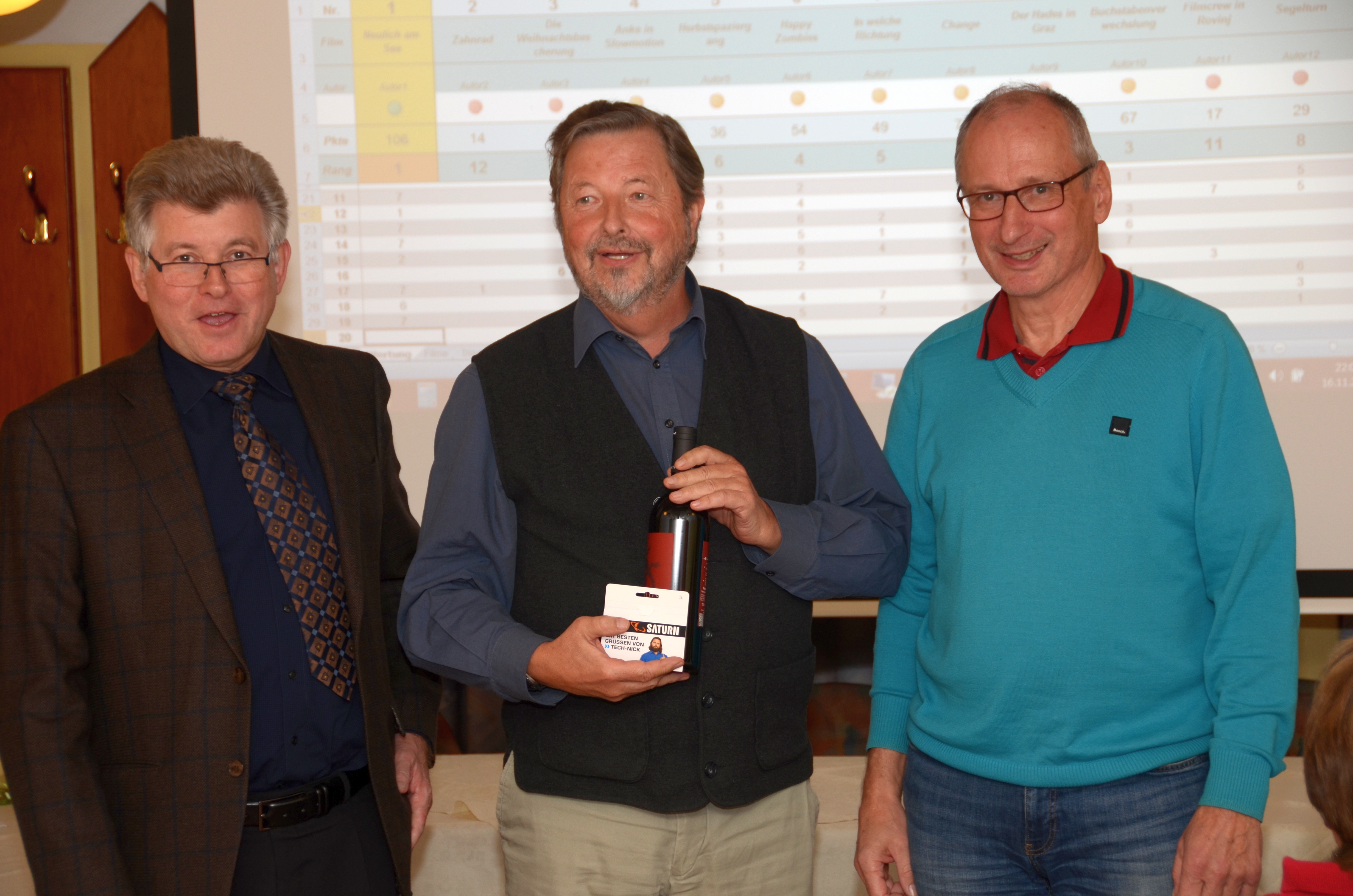 Unter heftigem Beifall erfolgte die Preisverteilung. Dabei wurden die Teilnehmer (nur einer pro Film) mit einer Flasche Wein belohnt, die drei Erstplatzierten erhielten zusätzlich einen Gutschein und das Siegerteam noch eine Flasche Sekt extra. Die Aufteilung der Preise innerhalb der Teams wurde intern geregelt.