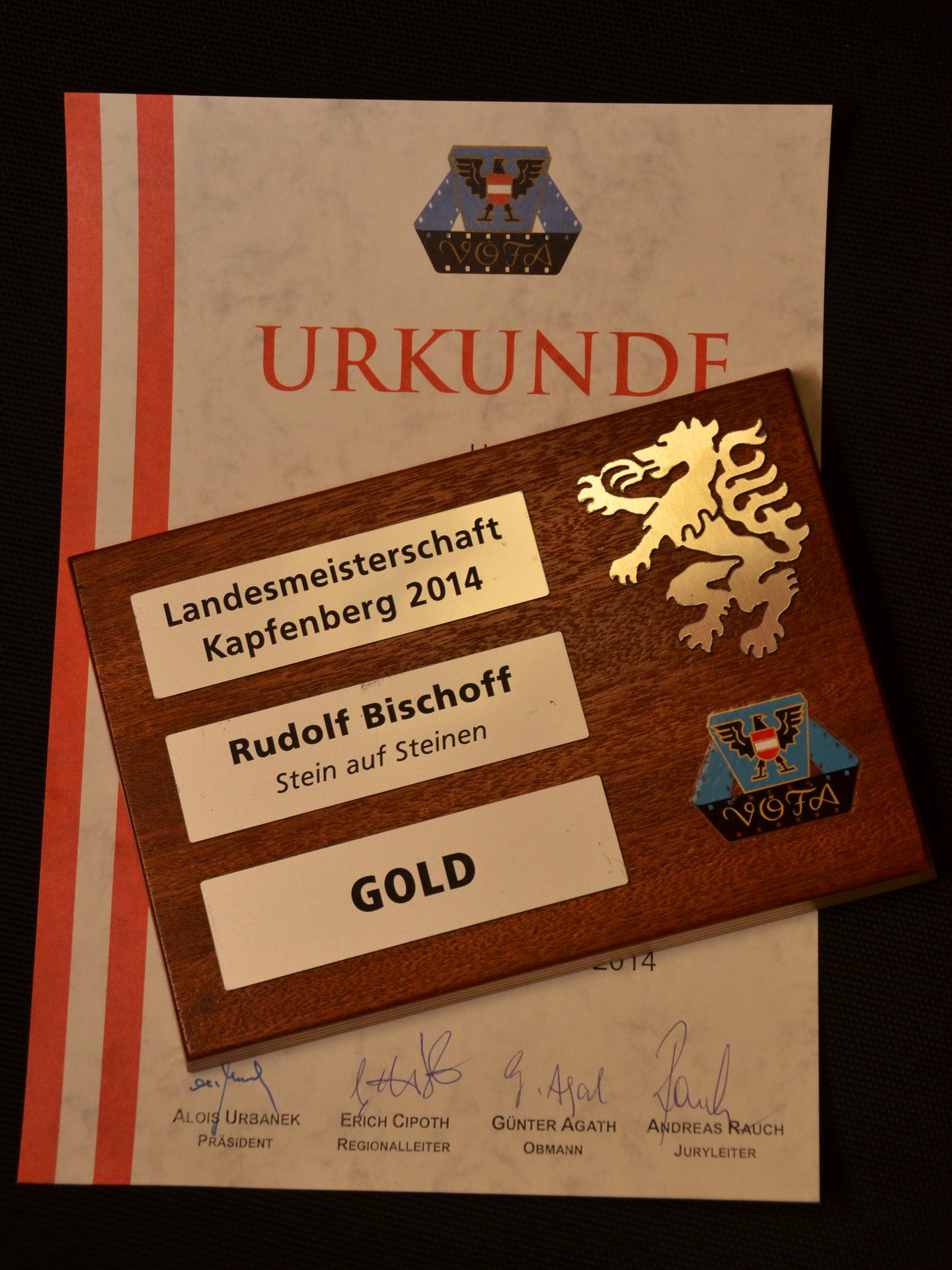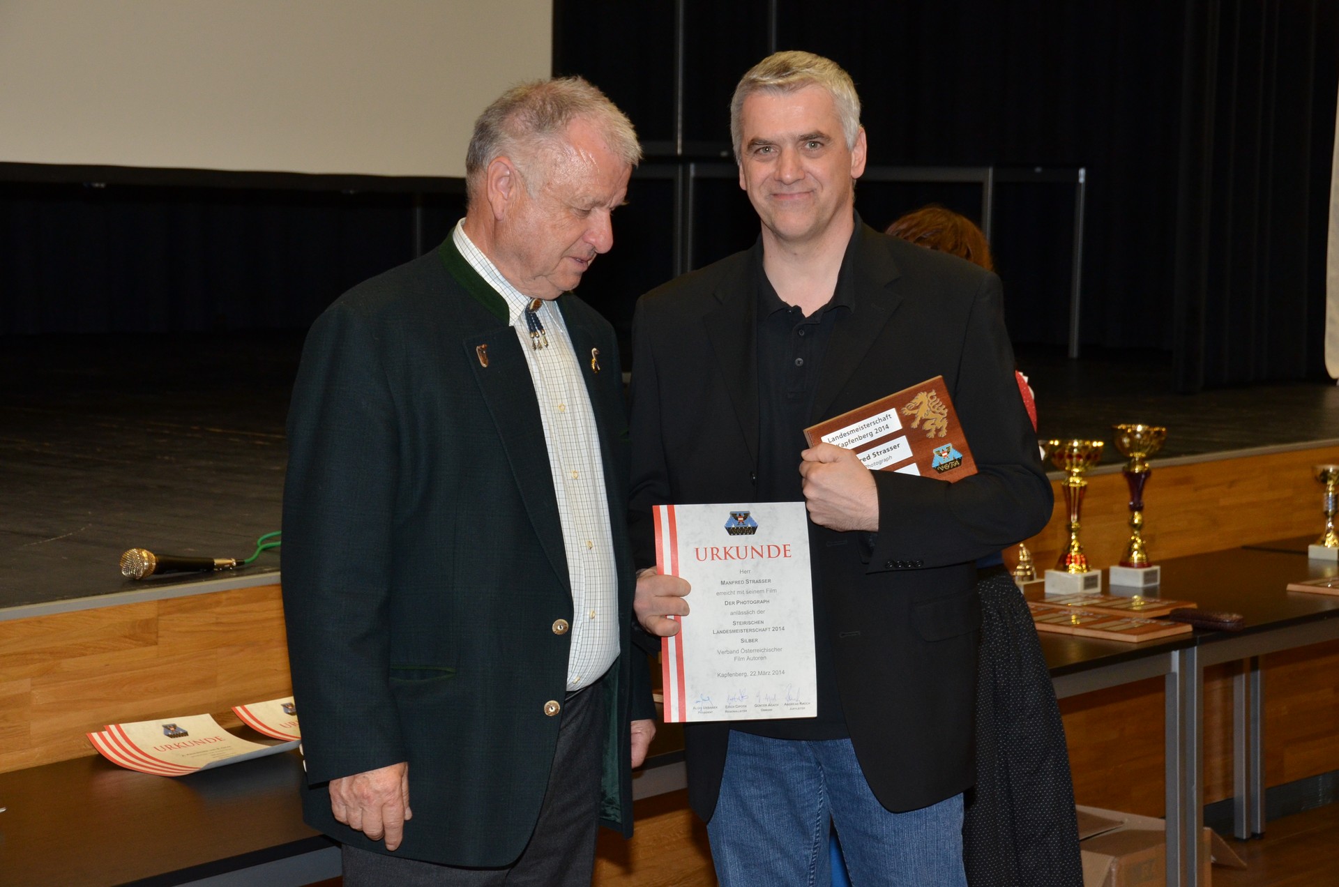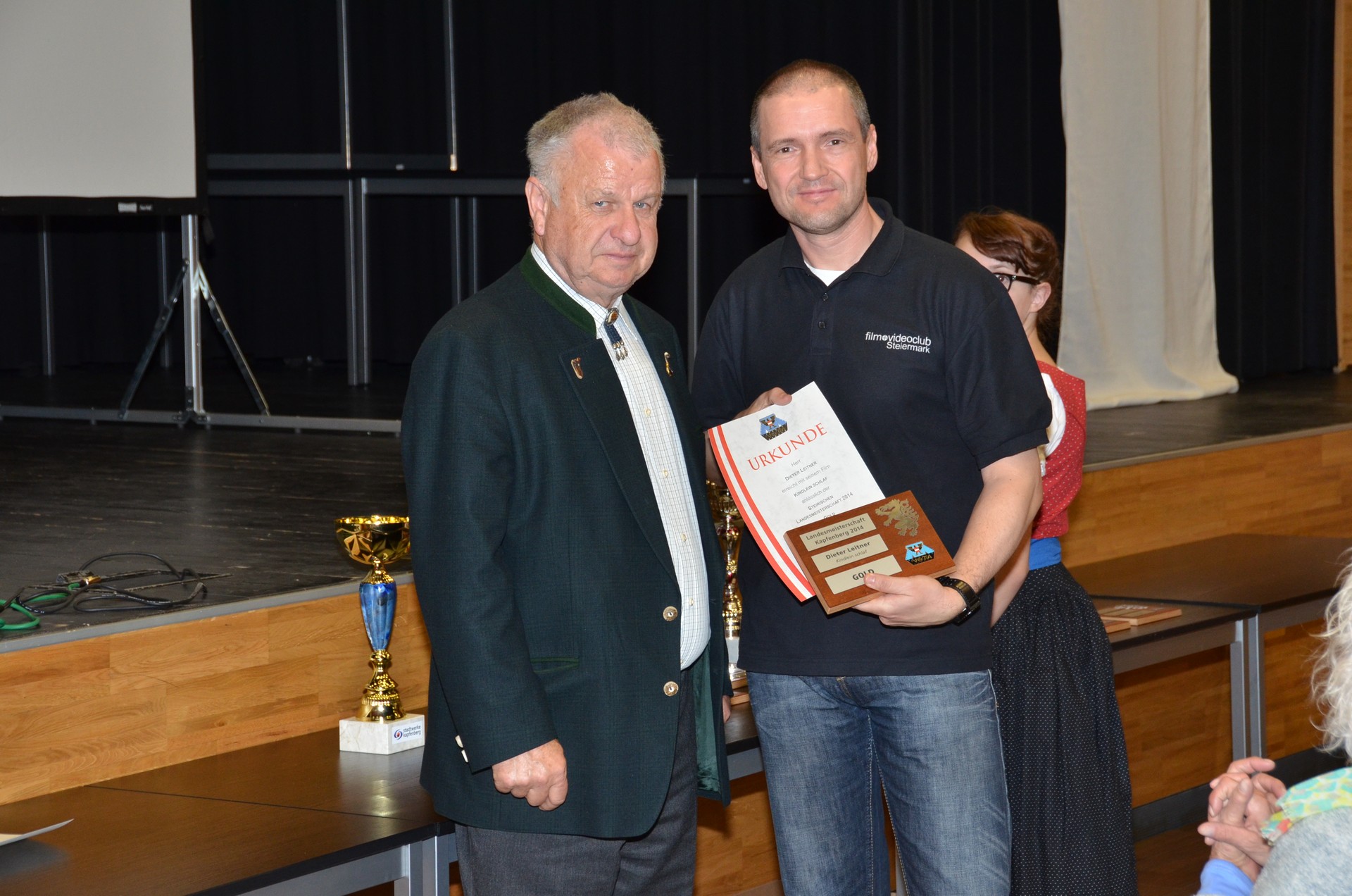Besonders erfreulich waren die zwei Gold-Medaillen von Dieter Leitner mit „Kindlein schlaf“ und Rudi Bischoff mit „Stein auf Steinen die Steine tragen“, der haarscharf am Landesmeister vorbei schrammte. Steirischer Landesmeister wurde schließlich Karl Resch mit “Die Stimme des Waldes“, einem Naturfilm mit vielen Makro-Aufnahmen in bestechender Qualität. Rudi Bischoff erhielt auch den Sonderpreis für eine bemerkenswerte Kamera. Besonders nett war die Bemerkung von Karl Resch nach seinem 5. Landesmeistertitel bei der Preisverteilung, dass er Rudi Bischoff den Titel aufrichtig gegönnt hätte.