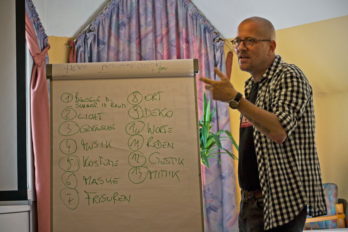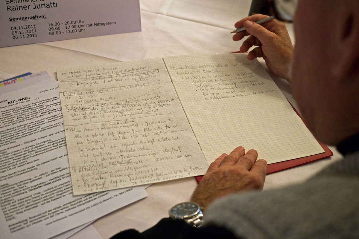 Mit vielen kreativen und anspruchsvollen Übungen und der nötigen Theorie zeigte uns Rainer Juriatti, wie man Figuren eine Tiefe verleiht und man sich leichter mit ihnen identifizieren kann. Auch der Ausdruck “Paradigmatischer Spannungsbogen” ist kein Fremdwort mehr für uns und wir haben wahrgenommen, wie wichtig es ist, ein Gerüst zu haben, auf dem man seine Geschichte aufbauen kann.