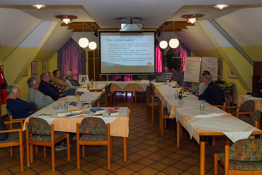 Das heurige zweitägige Herbstseminar 2013 hatte das Thema „Montage“ zum Inhalt. Gebannt folgten zwölf Teilnehmer den Ausführungen des Seminarleiters Andreas Rauch. Andreas hatte sein Programm kompetent und sehr gut, mit Folien unterlegt, vorbereitet. Die Erklärungen sind mit vielen Filmbeispielen verständlich gemacht worden, und vor allem gab es keine rein technischen Diskussionen. Sehr positiv ist auch die erwünschte Mitarbeit, mit Fragen und Gedanken von uns, zu erwähnen.