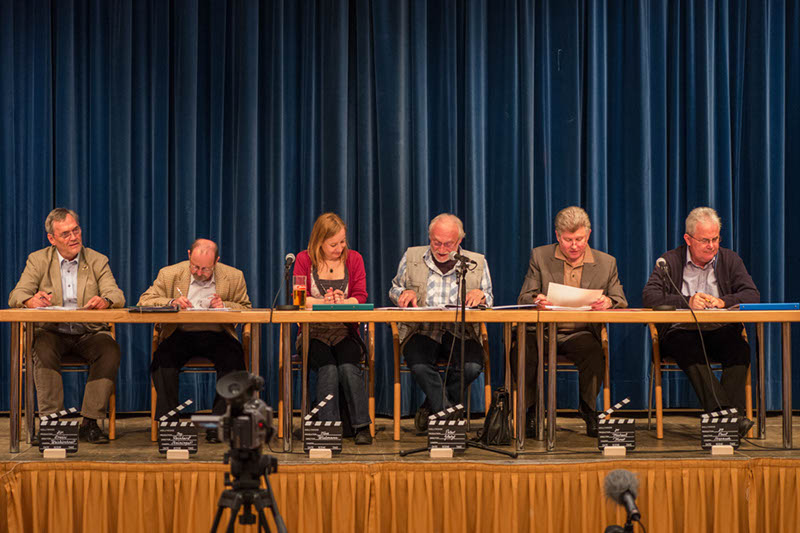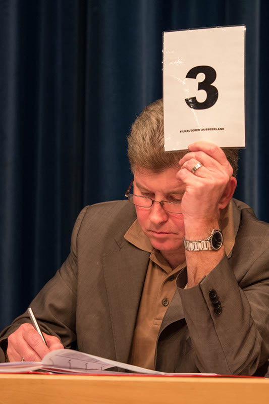 Ab Freitag stellten sich dann die 49 qualifizierten Filmbeiträge der fünfköpfigen Jury, der auch ich angehören durfte. Im Schnitt folgten schätzungsweise 100 bis 150 Zuseher, vorwiegend gut bekannte Insider, den Vorführungen. Die Filme wurden auf einer riesigen – fast zu großen – Leinwand in ansprechender Qualität ohne eine einzige Panne vorgeführt und konnten in ihrer Gesamtheit Jury und Publikum überzeugen. Ich kann mich an keine Staatsmeisterschaft erinnern, die – über alle Beiträge gesehen – ein solch hohes Niveau aufweisen konnte, und dies sowohl hinsichtlich der Breite der gewählten Themen als auch in handwerklicher Hinsicht. Die klassischen Reisefilme sind eindeutig rückläufig, Spielfilme nehmen in Anzahl und Qualität zu, Dokumentationen und Reportagen überwiegen, befassen sich aber vielfach mit ausgefallenen oder wichtigen, oft auch emotionalen Themen. Die klassische, geradlinig gestaltete Dokumentation kommt, auch wenn sie sauber gearbeitet ist, über eine Bronzemedaille nicht hinaus.
