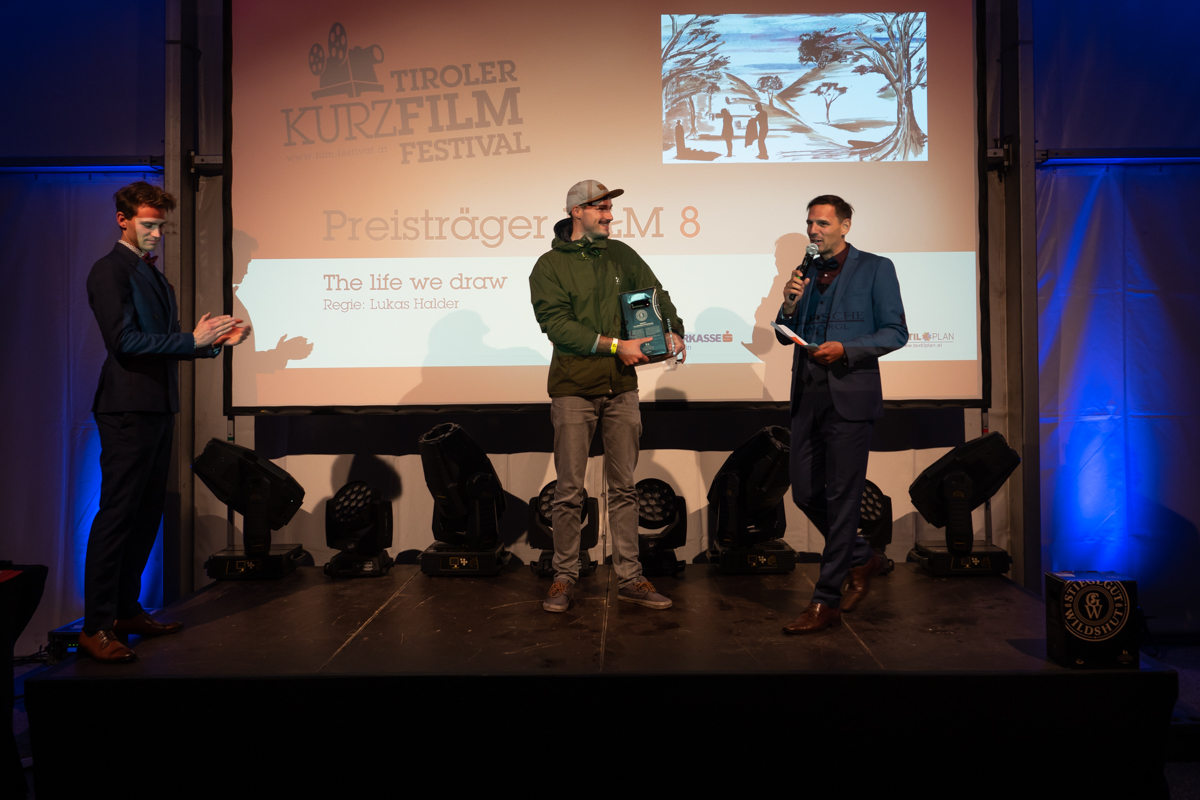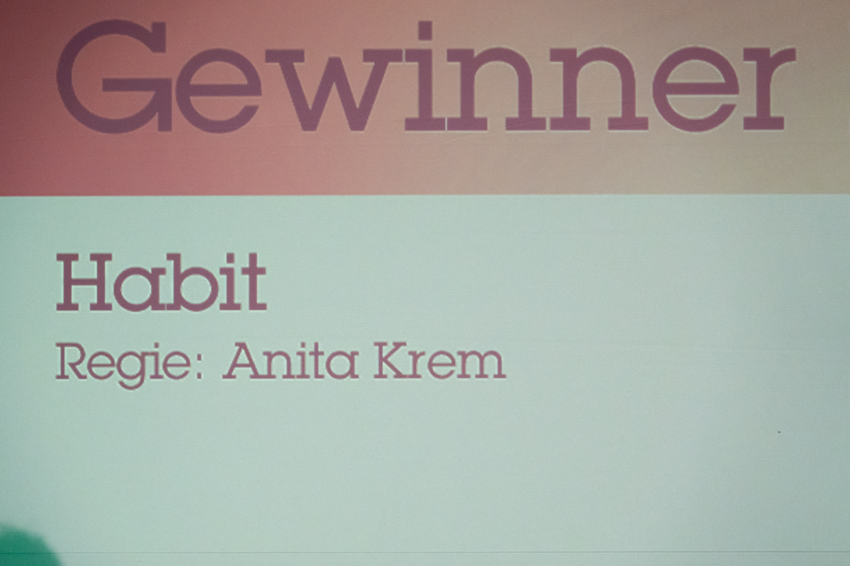 Am Ende gibt es mit „Habit“ unter der Regie von Anita Krem eine würdige Gewinnerin. Würdig insofern, weil Publikum wie auch Expertenjury diesen Film jeweils an die erste Stelle reihen. Da Anita Krem nicht persönlich anwesend ist, wandert die Trophäe statutengemäß an den Zweitplatzierten. Das ist Lukas Halder mit seinem Film „The Life We Draw“. Auch hier sind sich Publikum wie Jury in der Bewertung einig. In der Wertung des besten Newcomers setzt sich der Film “Horizont” von Martha Schnuderl durch. Da auch sie nicht anwesend ist, geht die Trophäe an den Zweitplatzierten Stephan Madersbacher mit seinem Film “22 Stunden”.