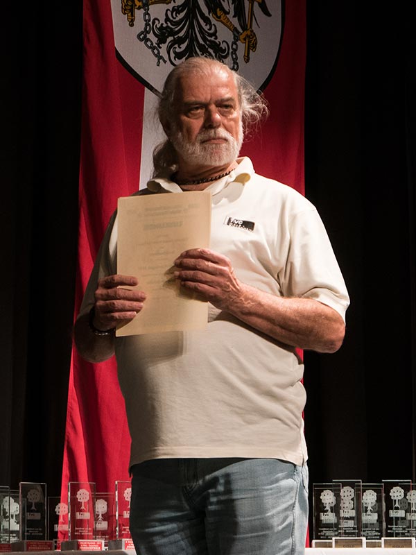Harald Scholz gewinnt mit seinem Film “Das Ende der Zukunft” den Bewerb und erhält neben Gold schon zum zweiten Mal die Siegertrophäe – den goldenen Walser Birnbaum. Auch der Sonderpreis für “die bemerkenswerten Schauspieler” geht an Harald Scholz. Man beachte die Mehrzahl, denn Harald spielt, wie gewohnt, alle Rollen in seinem Film selbst. Sonja Steger erhält für ihren Film “Leben am Ayeyarwady” Gold und den Sonderpreis des VÖFA. Gesamt werden 8 Gold-, 21 Silber- und 14 Bronzemedaillen und 3 Diplome vergeben.